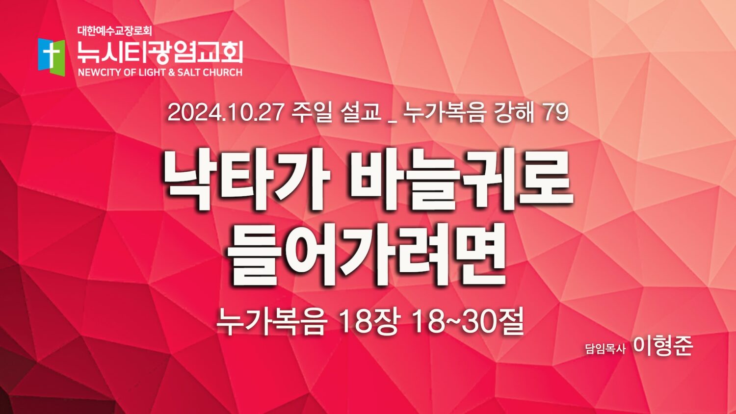 “낙타가 바늘귀로 들어가려면” _(눅18:18-30)_ 24.10.27_ 누가복음 강해 79