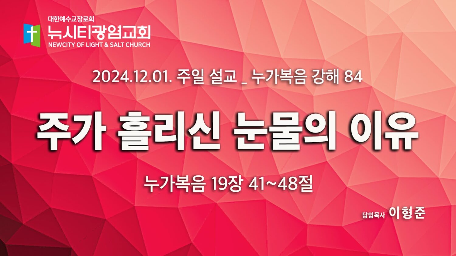 “주가 흘리신 눈물의 이유” _(눅19:41-48)_ 24.12.01_ 누가복음 강해 84