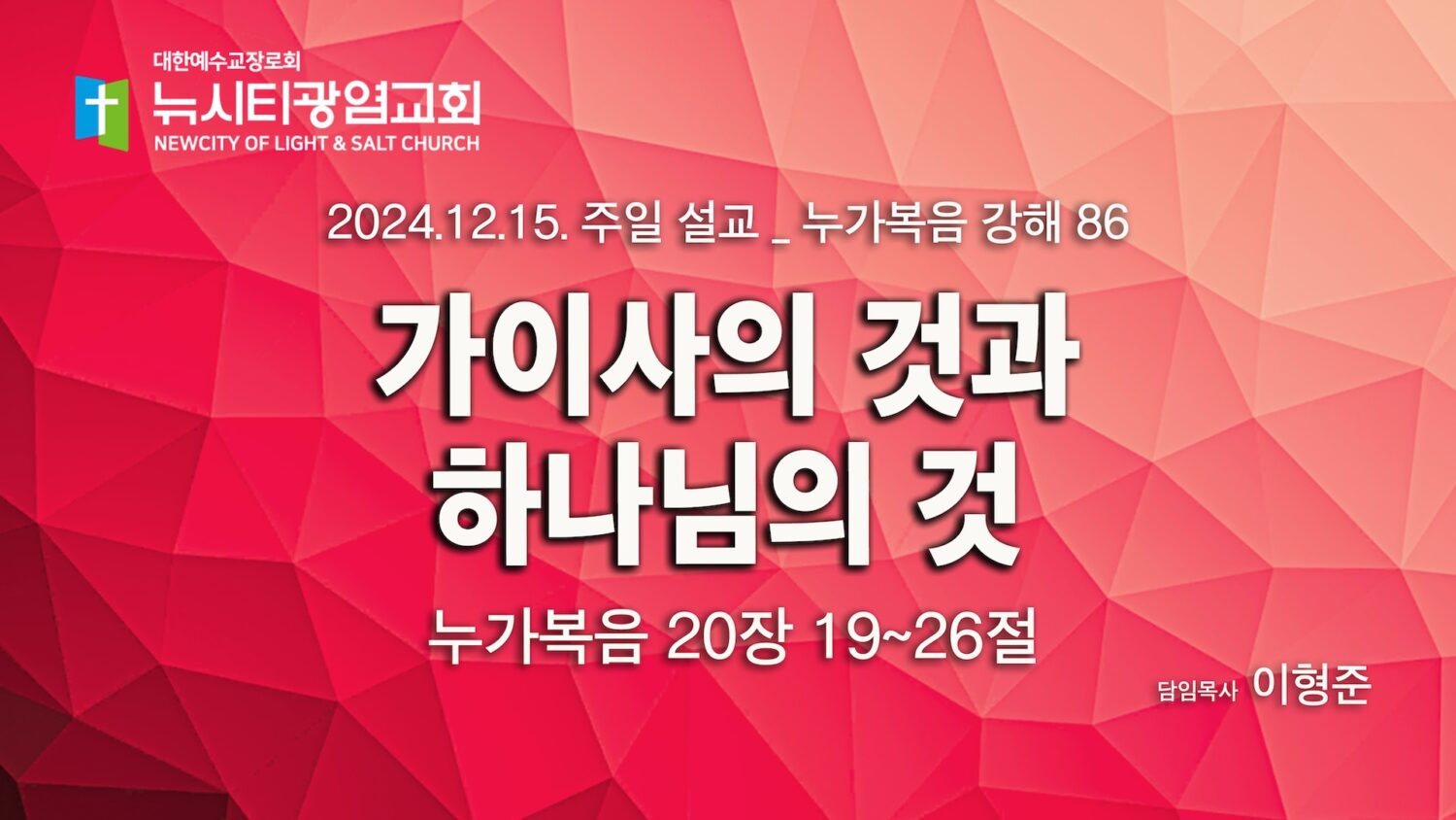 “가이사의 것과 하나님의 것” _(눅20:19-26) _24.12.15_ 누가복음 강해 86
