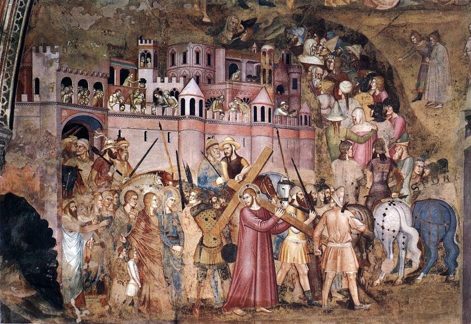 시몬이 예수의 십자가를 대신 짊어지는 동안,