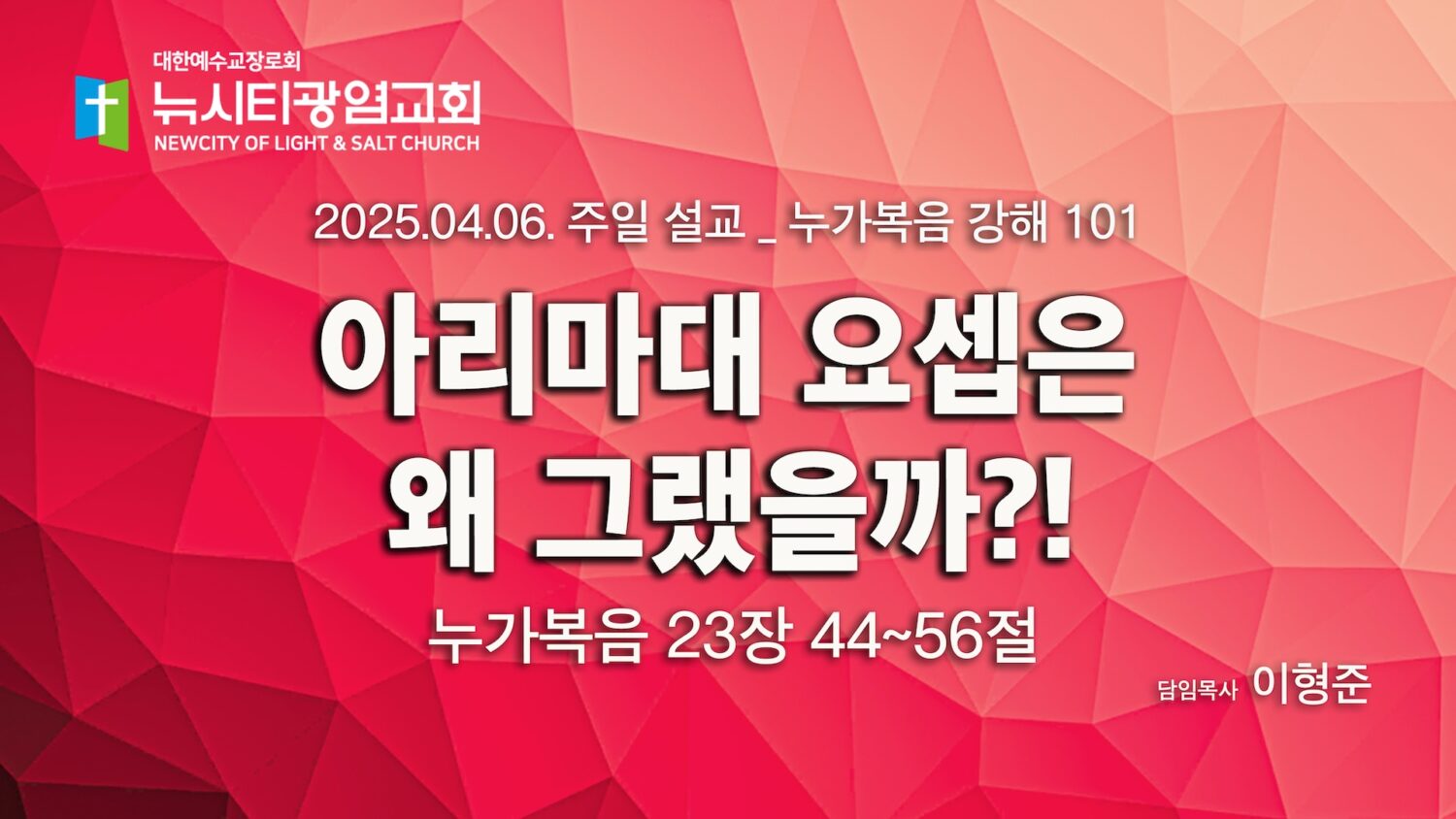“아리마대 요셉은 왜 그랬을까” _(눅23:44-56)_ 25.04.06_누가복음 강해 101