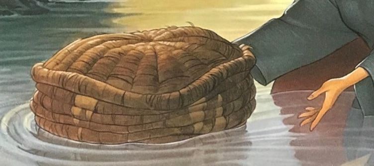 방주가 노아 대신 홍수에 던져져 생명을 살렸듯, 아기를 살린 상자를 죽음의 강에서 건져내어 모세는 살았습니다.