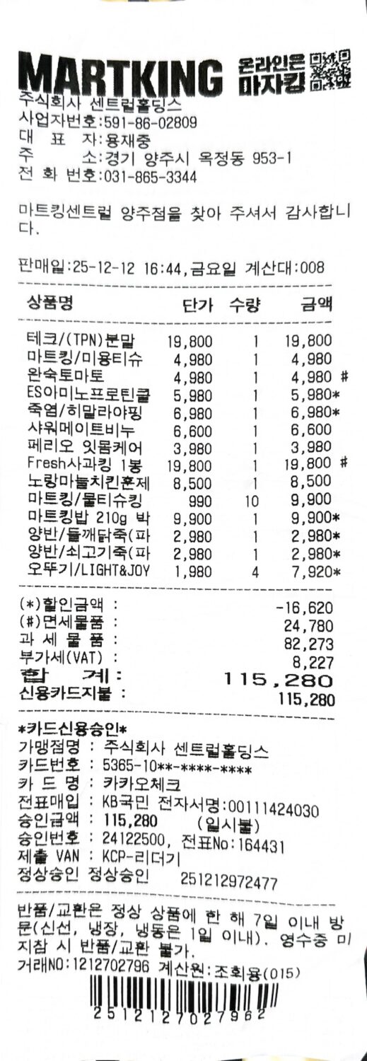 성도님들의 절기 구제 헌금 중 11만 5,280원을 사용하여