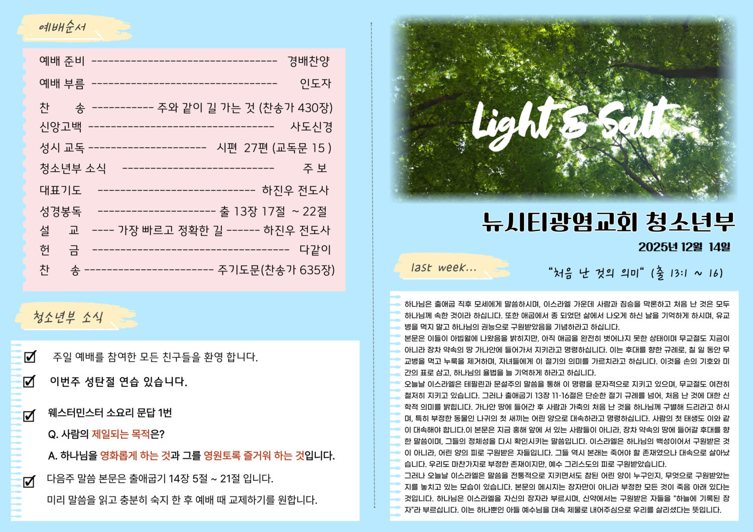 미리보는 12월 14일 청소년부 주보 By 하 진우 - 2025년 12월 14일 5 RELATED ARTICLESMORE FROM AUTHOR 미리보는 12월 7일 청소년부 주보 미리보는 11월 30일 청소년부 주보 미리보는 11월 23일 청소년부 주보 미리보는 11월 16일 청소년부 주보 미리보는 11월 9일 청소년부 주보