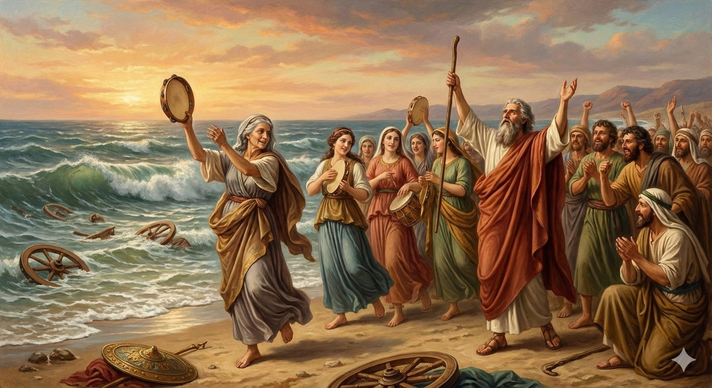 이스라엘을 비참하게 했던 옛 주인이 홍해 깊은 곳 스올로 잠겨버렸을 때,