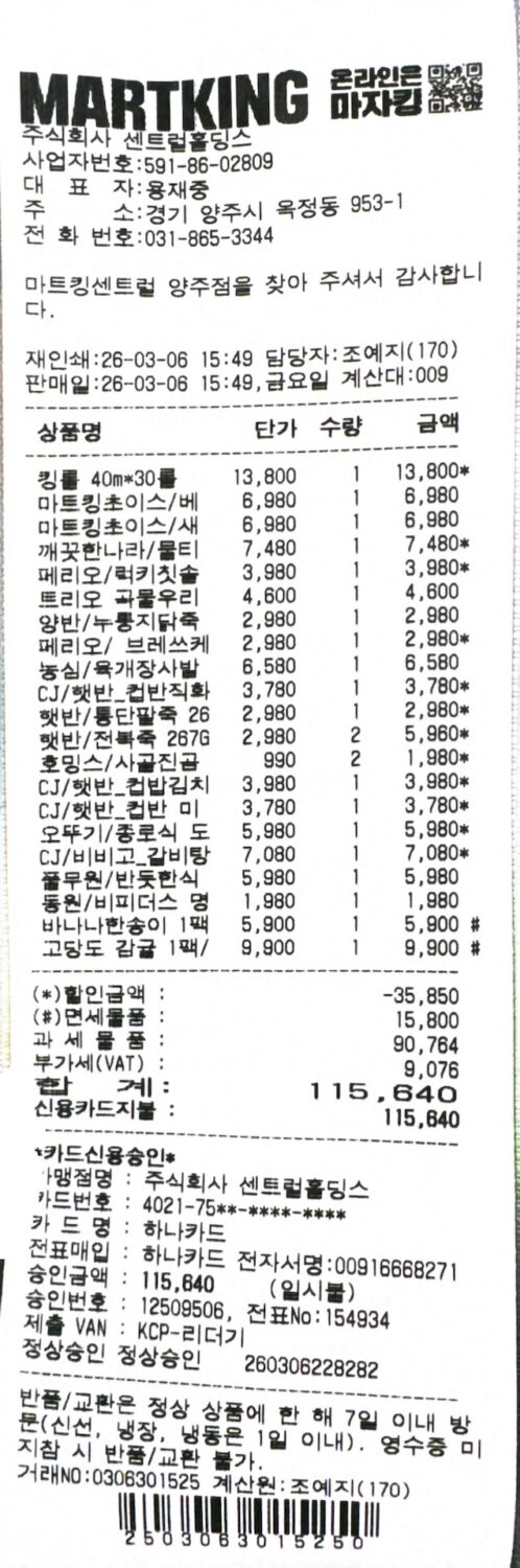 일상에 꼭 필요한 생필품들을 장 보아 전달했습니다.
