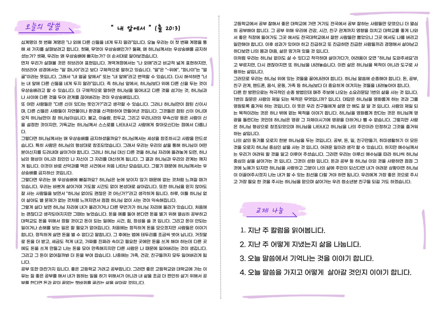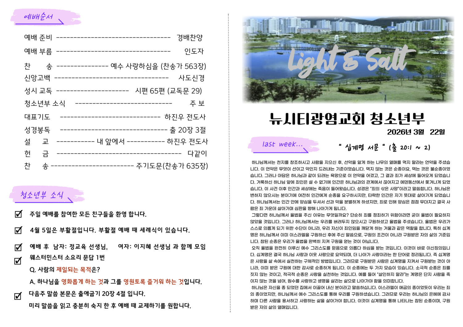 미리보는 3월 22일 청소년부 주보