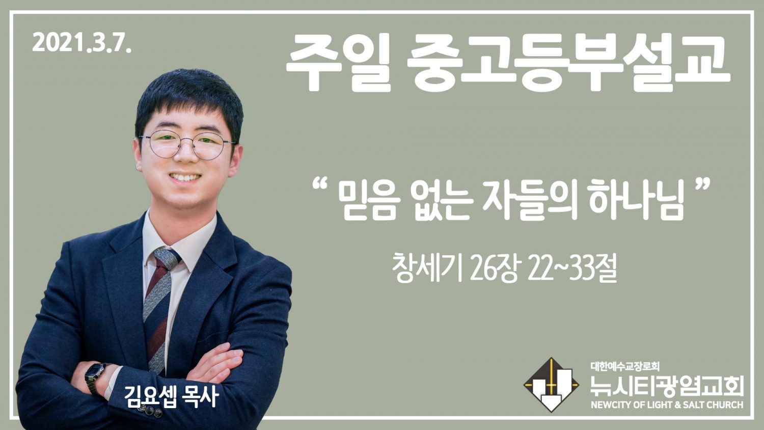 21.3.7.’중고등부’ 설교 “믿음 없는 자들의 하나님”(창 26:22~33)
