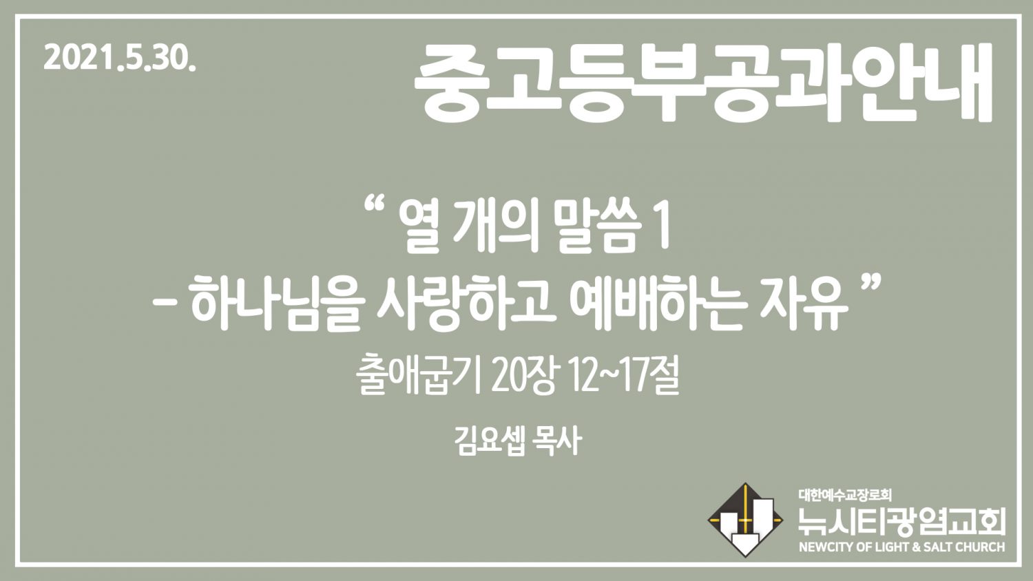 이번 주 공과는 7과, 십계명 전반부(출 20:1~11) 내용입니다.