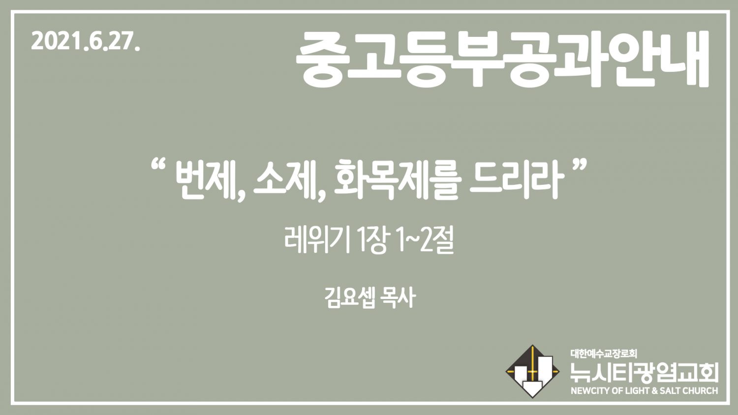 이번 주 공과는 10과, 번제, 소제, 화목제로 성경 범위로는 레위기 1~10장에 해당하는 내용입니다.