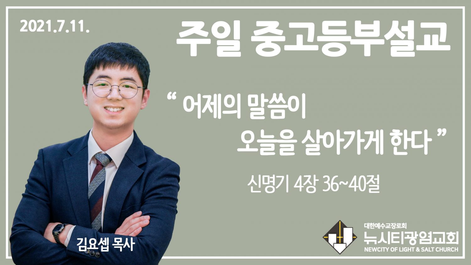 21.7.11. 중고등부 설교 “어제의 말씀이 오늘을 살아가게 한다”(신 4:36~40)
