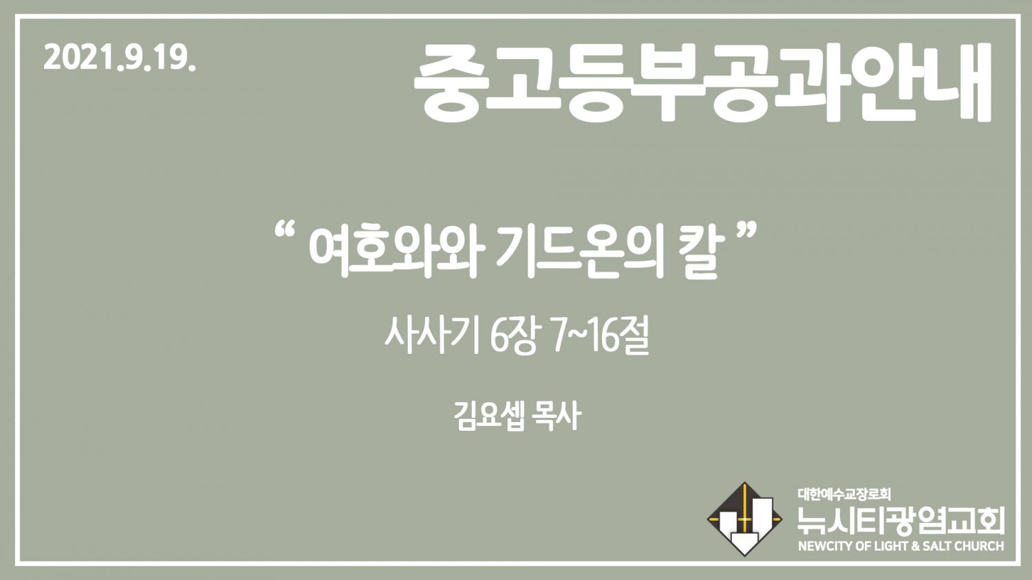 이번 주 공과는 9과, 사사기 6~7장 내용입니다.