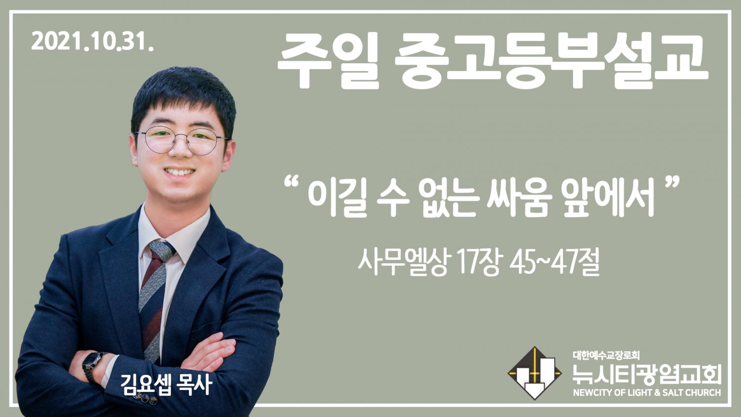 21.10.31. 중고등부 설교 “이길 수 없는 싸움 앞에서”(삼상 17:45~47)