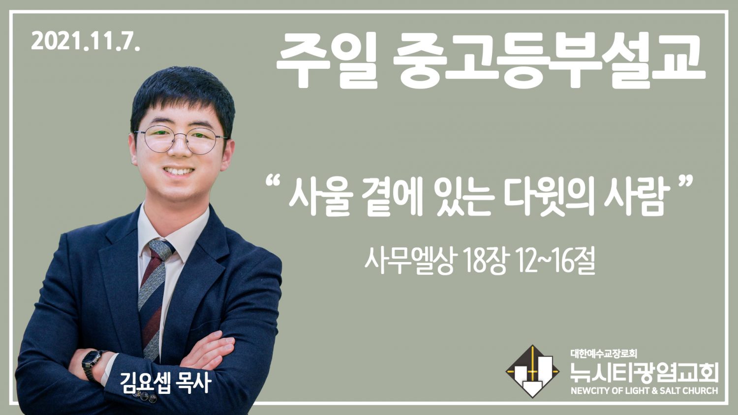 21.11.7. 중고등부 설교 “사울 곁에 있는 다윗의 사람”(삼상 18:12~16)